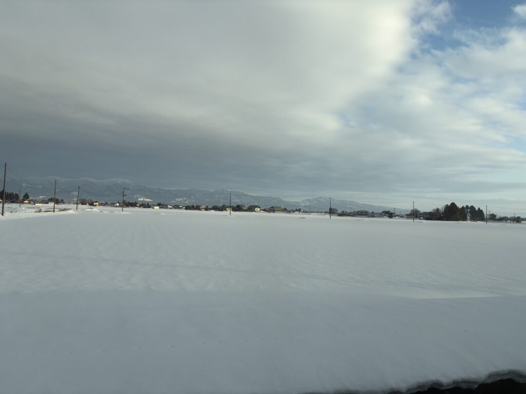 途中の田沢湖近くは雪がたくさん。